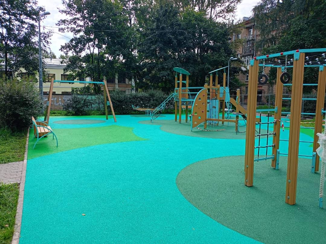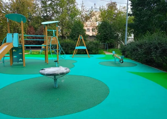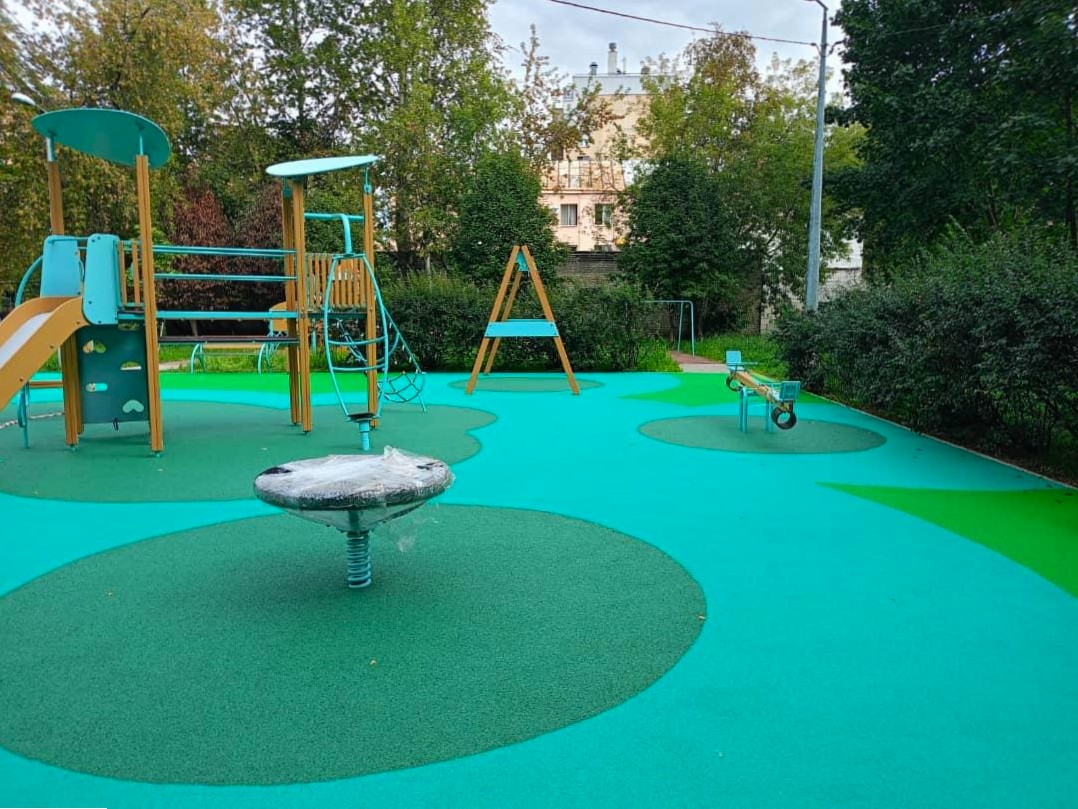 Наливное резиновое покрытие на придомовой детской площадке