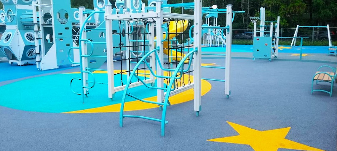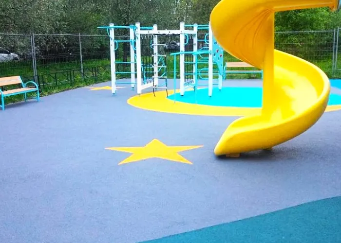 Устройство покрытия на детской площадке на основе покрытия «Сэндвич Вивигам».